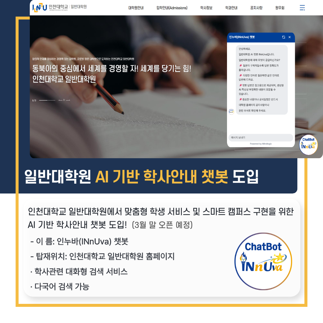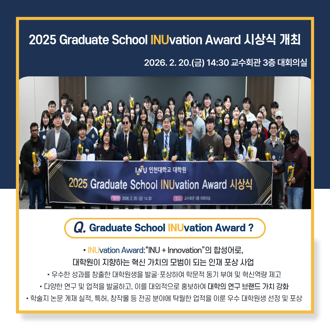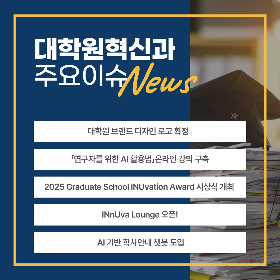 fnctId=bbs,fnctNo=1348 대학원혁신과 2025년 주요 이슈 안내 (카드뉴스) 글번호 420944 작성일 2026-03-10 수정일 2026-03-10 작성자 대학원혁신과 조회수 462 < 대학원혁신과 2025년 주요 이슈 안내 > 첨부파일 첨부파일이(가) 없습니다. 다음글 2026년도 제3차 기관생명윤리위원회(IRB) 정규심의 안내 김효빈 2026-03-10 15:36:43.0 이전글 [등록] 2026학년도 1학기 재학생 등록 연장 시행(2차) 강효현 2026-03-10 09:20:14.0 목록